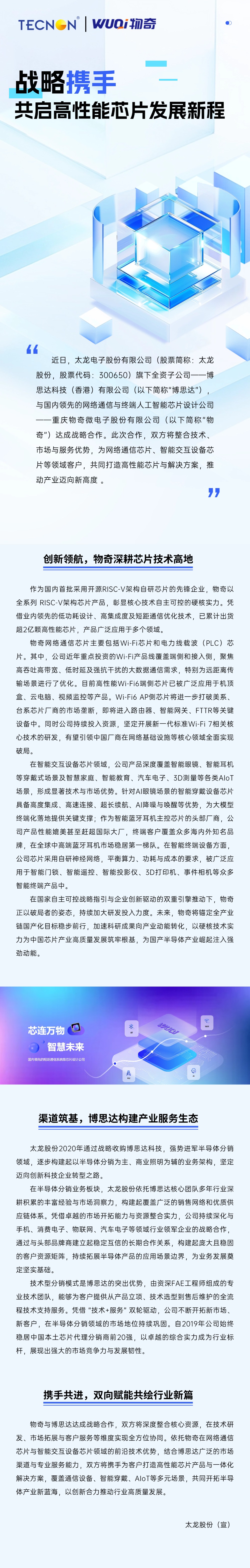 ¿ËÈÕ£¬ÍþÁ®Ï£¶û¹ÙÍøµØÖ·£¨¹ÉƱ¼ò³Æ£ºÍþÁ®Ï£¶û¹ÙÍøµØÖ·¹É·Ý£¬¹ÉƱ´úÂ룺300650£©ÆìÏÂÈ«×Ê×Ó¹«Ë¾¡ª¡ª²©Ë¼´ï¿Æ¼¼£¨Ïã¸Û£©ÓÐÏÞ¹«Ë¾£¨ÒÔϼò³Æ¡°²©Ë¼´ï¡±£©£¬Ó뺣ÄÚÁìÏȵÄÍøÂçͨѶÓëÖÕ¶ËÈ˹¤ÖÇÄÜоƬÉè¼Æ¹«Ë¾¡ª¡ªÖØÇìÎïÆæÎ¢µç×ӹɷÝÓÐÏÞ¹«Ë¾£¨ÒÔϼò³Æ¡°ÎïÆæ¡±£©¸æ¿¢Õ½ÂÔºÏ×÷¡£´Ë´ÎºÏ×÷£¬Ë«·½½«ÕûºÏÊÖÒÕ¡¢Êг¡Óë·þÎñÓÅÊÆ£¬ÎªÍøÂçͨѶоƬ¡¢ÖÇÄܽ»»¥×°±¸Ð¾Æ¬µÈÁìÓò¿Í»§£¬ÅäºÏ´òÔì¸ßÐÔÄÜоƬÓë½â¾ö¼Æ»®£¬Íƶ¯¹¤ÒµÂõÏòÐÂ¸ß¶È ¡£